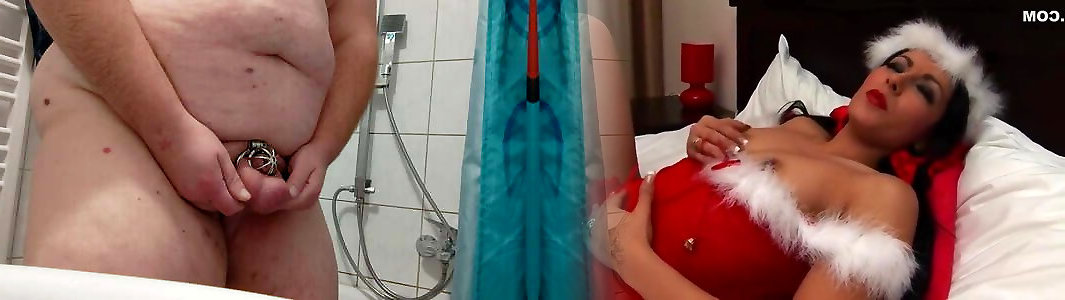 Fat sissy plays with big belly