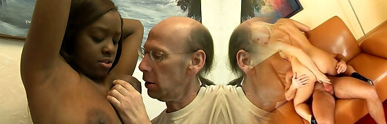 Chocolate hottie Christie Appetizing gets pleased by horny white grandpa